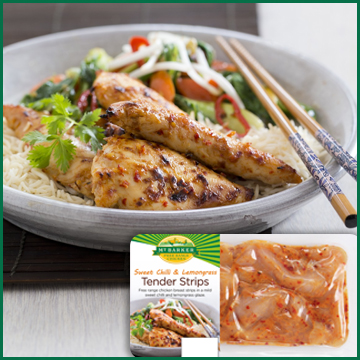 Free range chicken breast in a mild sweet chilli and lemongrass glaze.